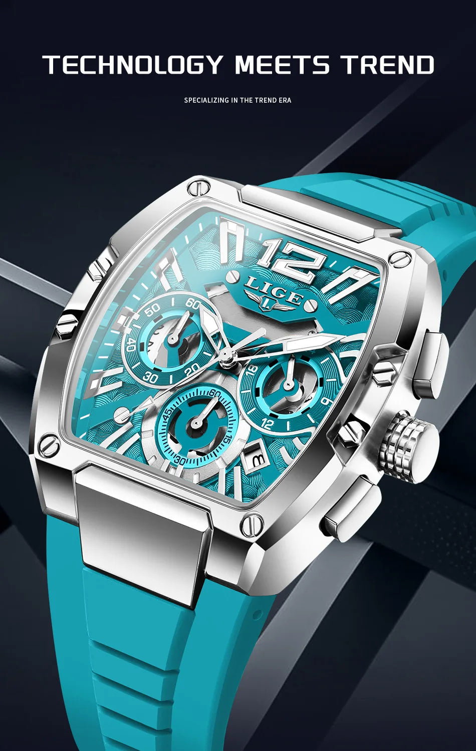 The LIANADO Vector Tonneau Chronograph brings a contemporary, technical aesthetic to daily timekeeping. Its tonneau-shaped case presents a strong yet balanced profile, complemented by a streamlined dial designed for clarity and proportion.